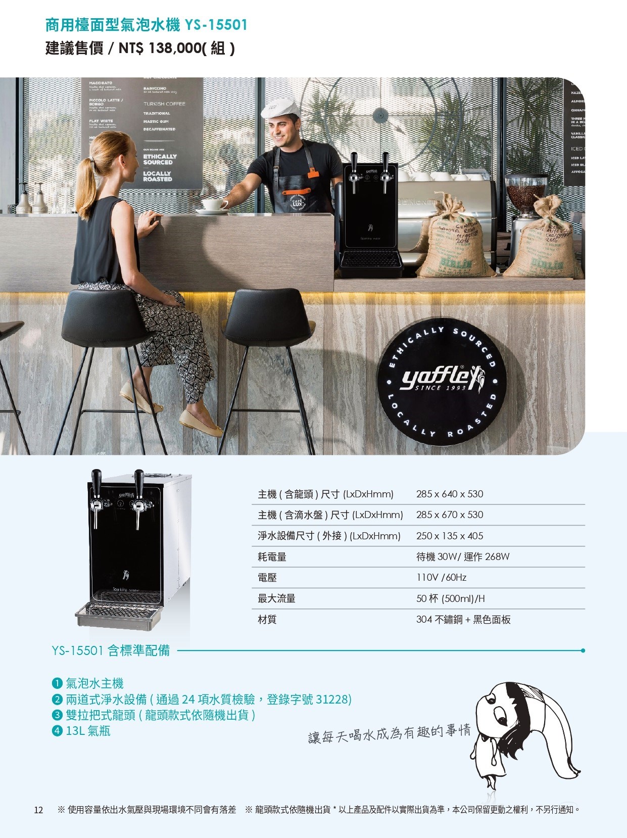 產品設備:氣泡水主機、雙拉把式龍頭、兩道式淨水設備、13公升氣瓶