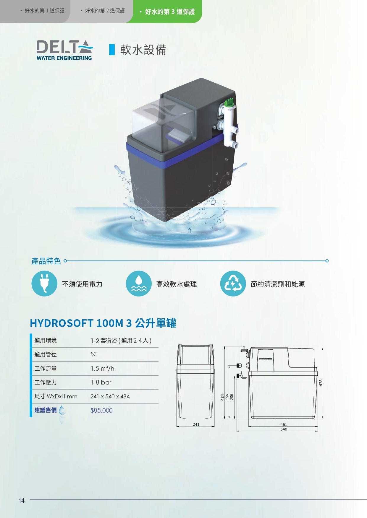【Delta免電力軟水機HYDROSOFT 100 M(3公升單罐)】